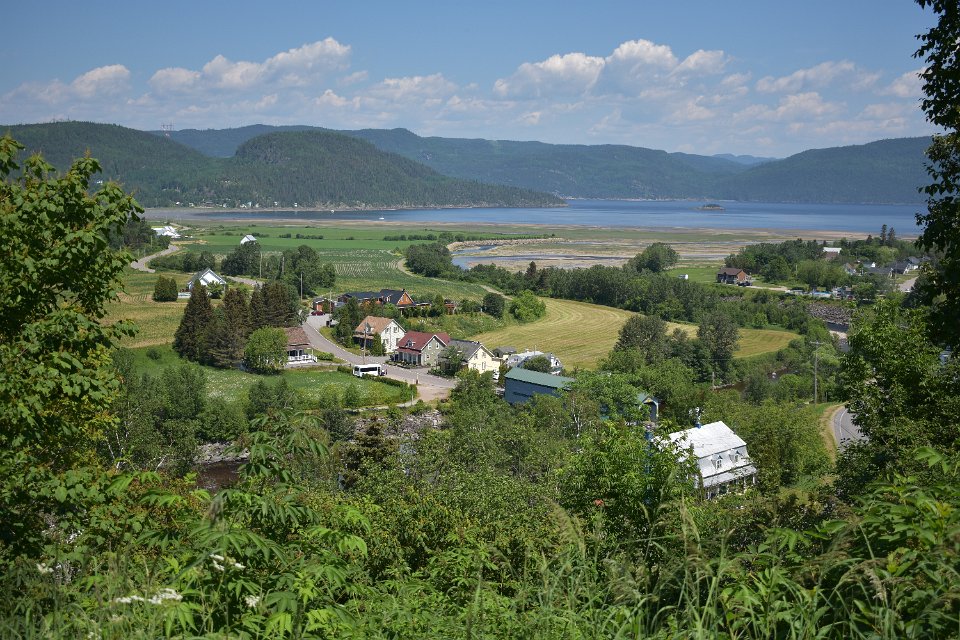 5 Le point de vue du belvédère du billet de 1000$ d'où l'on peut voir le pont couvert (toit vert) de l'Anse-St-Jean qui orne le dos des billets de 1000$ canadiens !